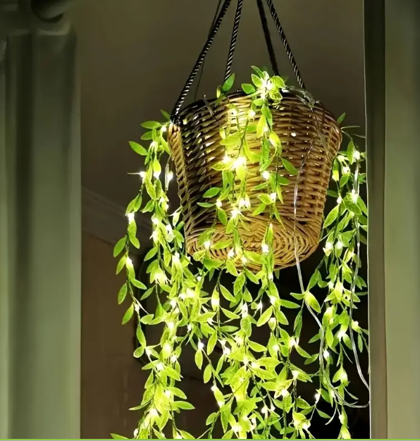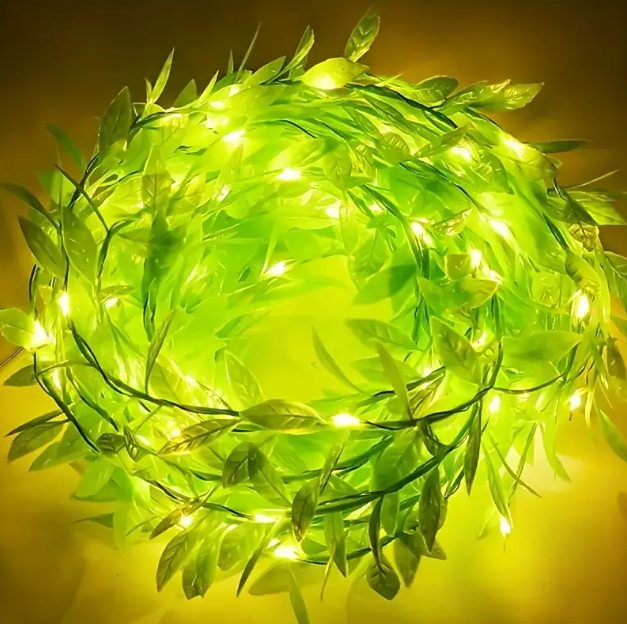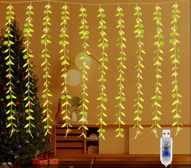 Ilumina tu hogar con estilo y energía natural gracias a nuestra cortina de hojas artificiales con luces LED cálidas .